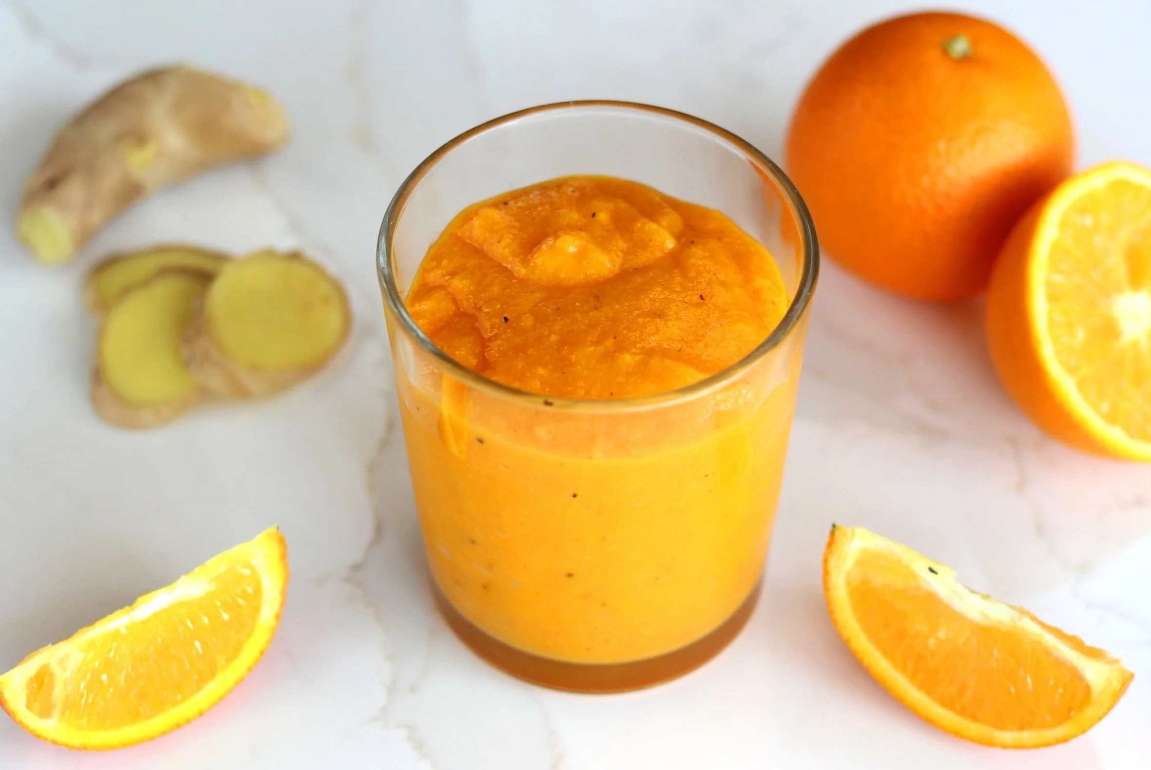 Place all of the ingredients in a blender and blend well until smooth