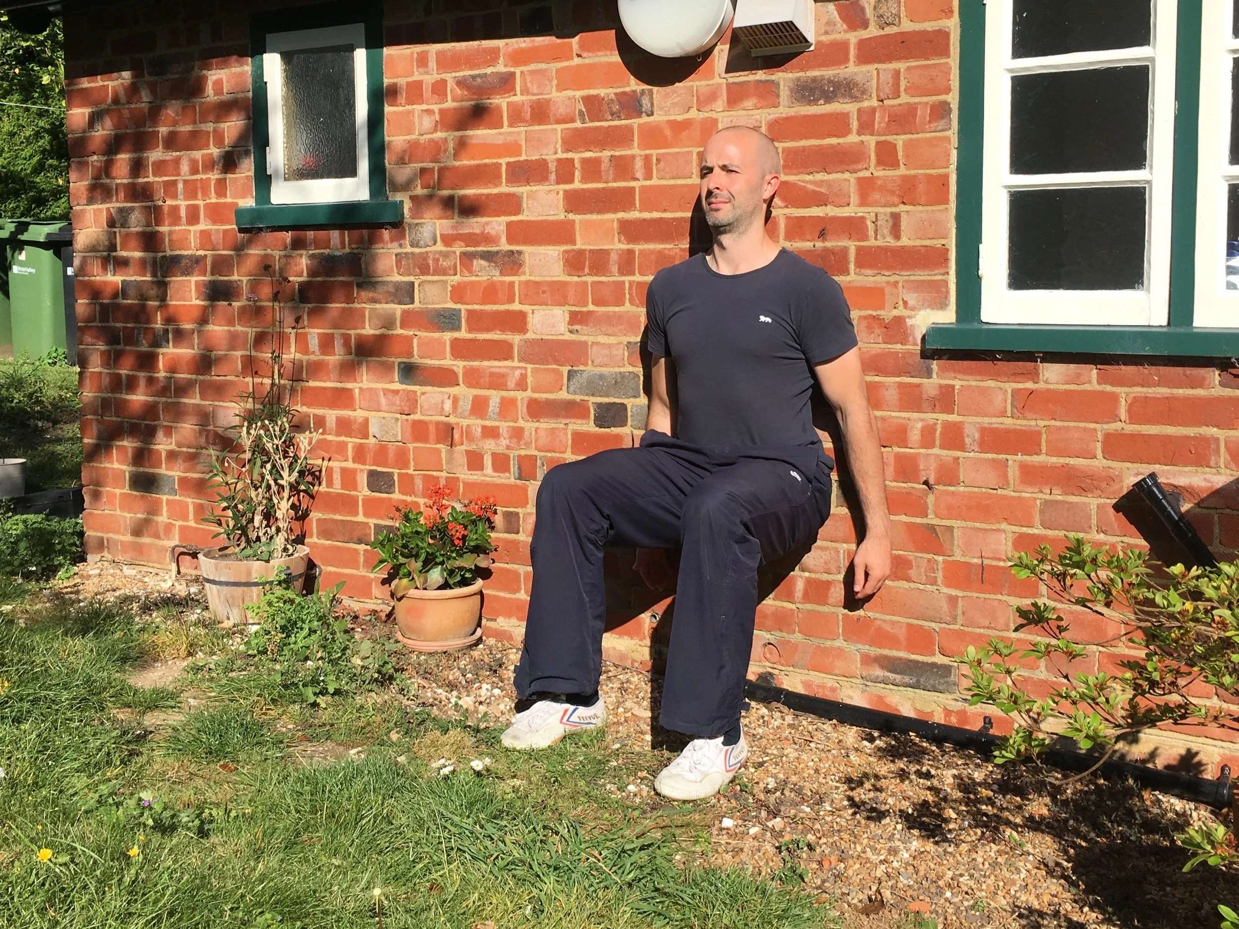 To make the exercise harder ensure your thighs are parallel with the ground and actively push your feet down into the floor throughout the hold.